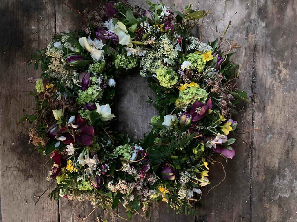 Funeral flowers are arranged with fresh and seasonal flowers and foliage from the Applehouse Garden and supplemented with British grown flowers when necessary.